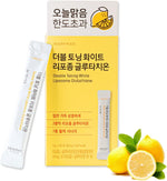 Double Toning White Liposome Glutathione is a daily stick-pack supplement combining liposomal L-glutathione, small-molecule fish collagen and vitamins to help brighten, firm and tone the skin.